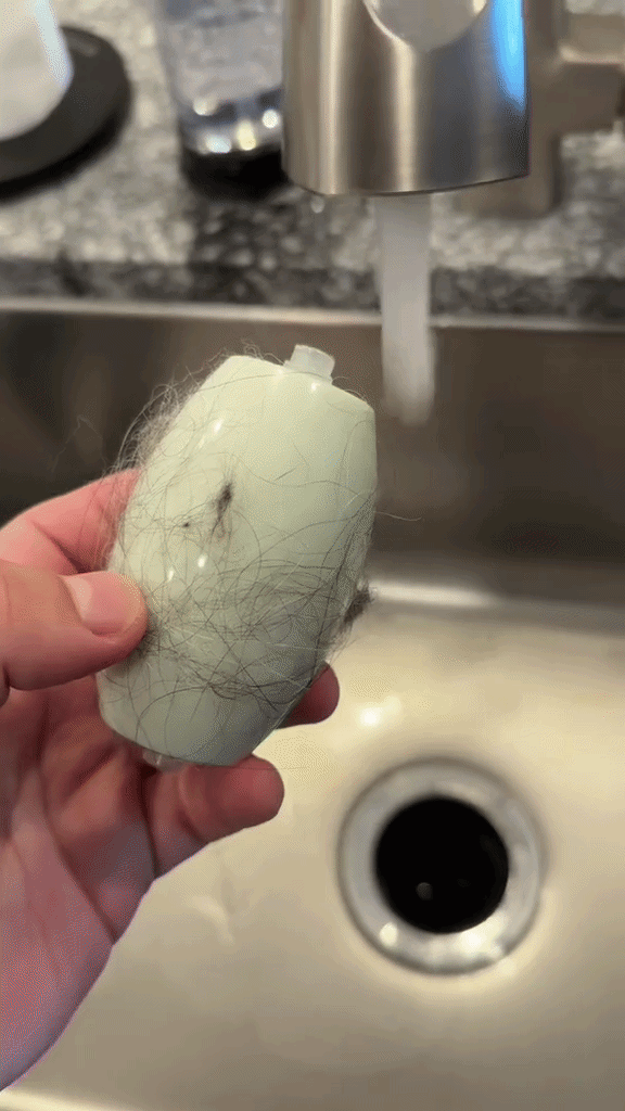 To proste: przesuwasz kulę po ubraniu, a jej zaawansowana, aktywna powierzchnia natychmiast przyciąga kurz, pyłki i sierść. Gdy kulka straci przyczepność, po prostu opłucz ją pod bieżącą wodą — brud spłynie w sekundę, a Ty możesz używać jej ponownie.